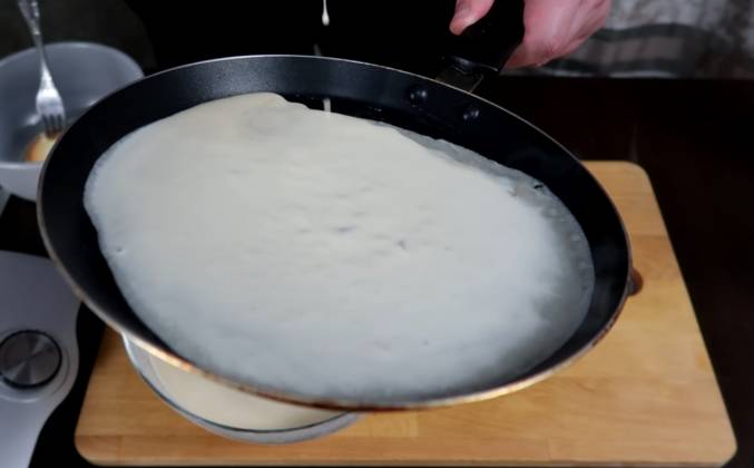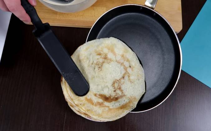 3.  Жарим наши блины как обычно - на хорошо разогретой сковороде, каждый раз смазывая ее растительным маслом. Наливаем тесто тоненьким слоем. И аккуратно снимаю. Смазываю сковородку растительным маслом при помощи луковица, мне нравится так делать, делала еще моя мама вместо кисточки. Отлично подходит. Наливаем небольшое количество теста, круговыми движениями распределяем его по всей сковородке. Обжариваем с первой стороны пока сверху полностью тесто не пропечется, а края не начнут темнеть. Вот так легко и просто мы приготовили замечательные блинчики! Они получаются тонкие, ажурные и никогда не рвутся во время выпечки.Видео рецепт ютуб ниже 👇
