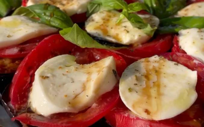 Итальянский салат Капрезе с баклажанами, помидорами и сыром