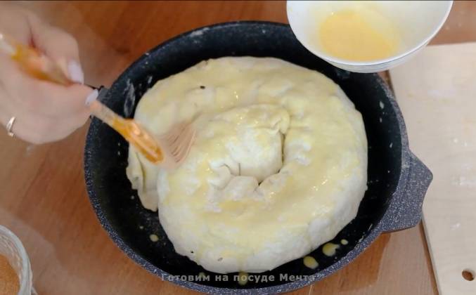 3. Приправим немножко корицей. Буквально чуть-чуть. Добавим немножко сахара. И добавляем чуть-чуть масла. Надо заворачивать наш пирог. Ты этим займешься, а я поделю белок. Запекаем в заранее разогретой духовке 200 градусов, 35 минут. Прошло 35 минут, наш штрудель готов.Видео рецепт ютуб ниже 👇