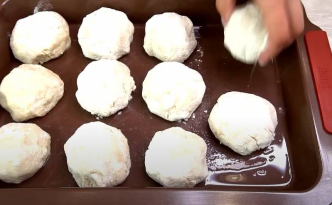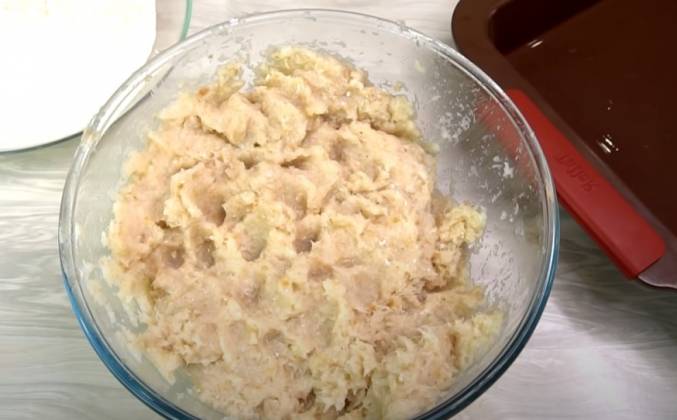 2. Рыбное филе 700 грамм пропускаем через мясорубку, мелкая решетка, я пропускаю на два раза, чтобы быть уверенной что все мелкие косточки перемололись. Теперь пропускаем через мясорубку отжатый хлеб и лук. Добавляем соль неполную ч.л. перец черный по вкусу, перемешиваем и разбиваем 1 яйцо, еще раз все перемешиваем. Фарш готов. Берем подходящий противень смазываем маслом, у меня , размер 40 см на 27 см. Формируем тефтели, у меня весом примерно по 100 грамм, обваливаем в муке и кладем на противень.