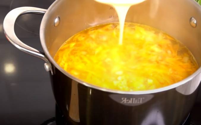 4. В рыбный бульон кладем пассированную морковь с луком и рыб которую отделили от косточек, добавим 100 грамм сметаны, добавим соль по вкусу и черный перец, можно добавить зелени по желанию.