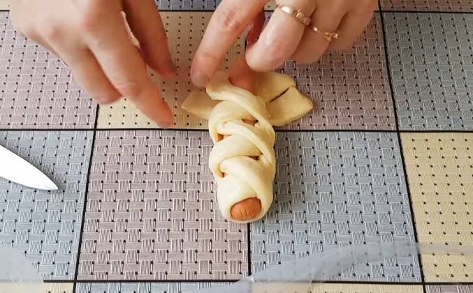 + яйцо и 1 ст л молока для смазывания сосисок перед выпеканием