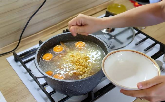 2. Добавляем в суп. Кладем очень аккуратно, чтобы не обжечься. Бульон у нас готовится десять минут. Дальше мы нарезаем картофель средними кубиками. У меня просьба. Сделай фрикадельки с размером чуть меньше грецкого ореха. Лук и морковь отдали свой сок бульону. Мы добавляем картофель и горох. Добавляем горох. Даем повариться 15 минут. Вынимаем и лук и морковку. Следующий шаг - это мы добавляем фрикадельки. Крылышки я вынимаю. Ты предпочитаешь именно копченые крылышки, но не грудку?