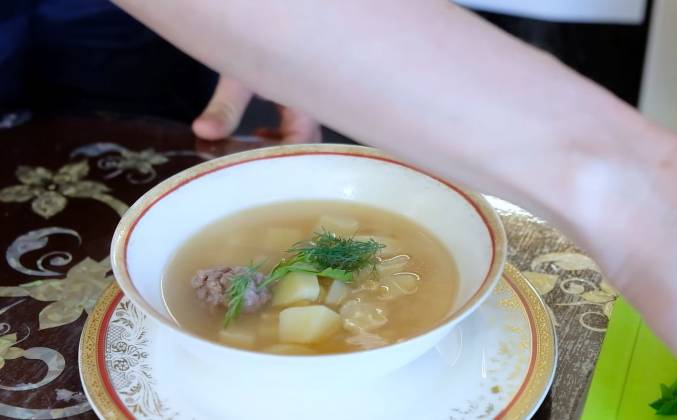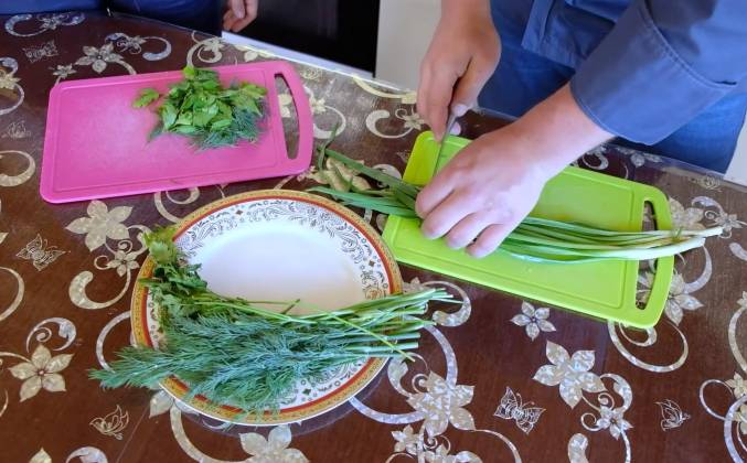3. Да, из косточек бульон будет вкуснее. Соль по вкусу. Солить нужно всегда по вкусу. Подготовим зелень для подачи. Я взяла укроп, петрушку и зеленый лук. Мы нарезать ее не будем, просто отделим листья от стеблей. А лук мы нарежем перьями. Выключаем и даем настояться 10 минут. Пахнет просто великолепно. Добавляем зелень. Суп готов. У тебя очень ароматный и вкусный суп получился.Видео рецепт ютуб ниже 👇