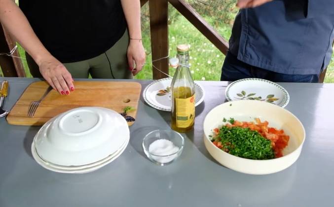 Табуле с курицей рецепт. Я, как любитель правильного питания, люблю готовить что-то очень быстро, без масла и конечно вкусно. Это будет курица, которую мы быстро обжарим на гриле. Блюдо готовится буквально за 5 минут. На гарнир будет табуле. Будем использовать кускус, помидоры и много зелени. И немножко соли.