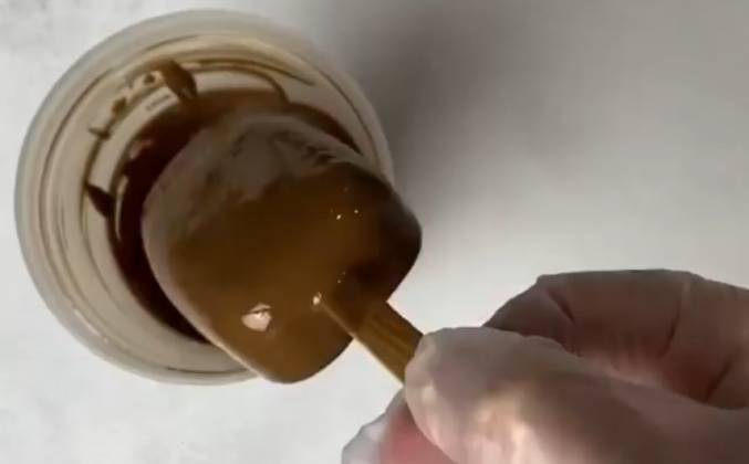 3. После стабилизации края формы нужно немного растянуть чтобы маршмеллоу отошло от формы и потом аккуратно их достать. Если маршмеллоу плохо выходит из формы, то причины может быть две: — Прошло недостаточно времени для стабилизации. — Форма была плохо смазана маслом. Отправляем маршмеллоу на 20-30 минут в морозилку. Окунаем эскимо в темперированный шоколад или шоколадную глазурь (для этого к шоколаду обавляем 7% растительного масла). Даём шоколаду застыть.Видео рецепт ниже 👇