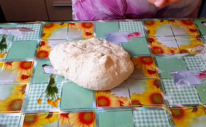 2. Стол смазывайте маслом и продолжайте хорошо вымешивать. Тесто должно получиться мягким, эластичным, не липнущим к рукам. Но не забитым мукой. Чистую миску смазываю растительным маслом, также немного смазываю тесто. Вот такое мягкое, пластичное, но не липнущие к рукам оно должно получиться. Хорошо обминаю тесто и перекладываю в миску. Накрываю пленкой. И оставляю для подъема на 1,5 часа в теплом месте. Я оставляю в духовке с включенной электролампочкой. Прошло 1,5 часа. Тесто хорошо поднялось. Оно очень мягкое и пористое. Обминаю его. Стол слегка смазываю растительным маслом. Выкладываю на него тесто и разделяю на три части. Я буду делать хлеб в виде косички. Так он получается красивым и в процессе выпечки не рвется по краям.