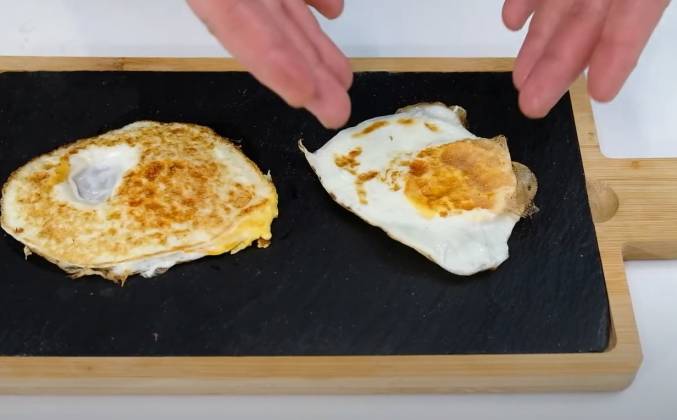 2. Теперь готовим с маслом. Смотрим что произошло с яйцом, оно скользит, переворачиваем. Друзья, мы видим два совершенно разных результата, это яйцо приготовленное без масла. Это яйцо приготовлено с маслом. Результат налицо: и это яйцо, и это яйцо приготовилось.