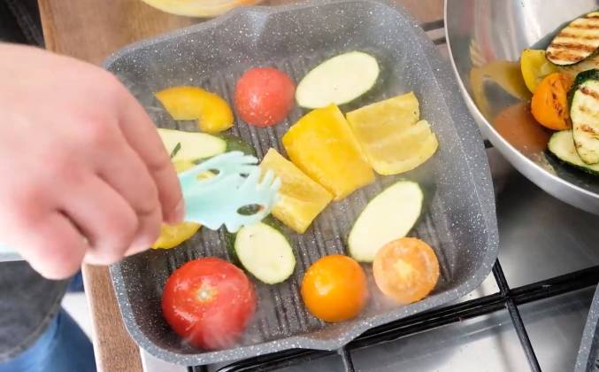 Овощи гриль в духовке рецепт - очень популярное блюдо Это овощи гриль. Особенностью нашего рецепта будет в том, что мы используем очень легкий и очень универсальный маринад для овощей, а также мы используем сковороду-гриль со съемной ручкой.
