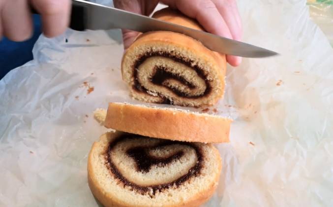 3. Шов бисквитного рулет должен оказаться внизу. Дать мин 15-20 полностью остыть. Как только бисквитное тесто остынет, разворачиваем аккуратно и смазываем любимой начинкой. У нас это домашний абрикосовый джем. Сворачиваем наш бисквитный рулет. Остатки джема убираем с помощью ложечки. Отставить бисквитный рулет на 20-30 мин при комнатной температуре, можно и на ночь даже. По желанию, можно украсить сверху сахарной пудрой, мятой и сезонными фруктами. Бисквитный рулет с абрикосовым джемом получается очень нежным, сочным и буквально тает во рту. Обязательно попробуйте этот рецепт бисквитного рулета в домашних условиях!Видео рецепт ютуб ниже 👇