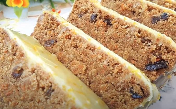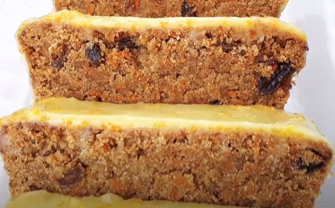 6. А теперь давайте его разрежем. Несмотря на внешнюю плотность кекса, он получается очень нежный и рассыпчатый за счет отсутствия клейковины в гречневой муке. При том, что кекс совершенно постный вкус у него очень приятный и насыщенный за счет наличия цитрусовых и пряностей, морковь и изюм придают ему дополнительную влажность, а апельсиновая глазурь завершает неповторимый букет вкусов и ароматов.Видео рецепт ютуб ниже 👇