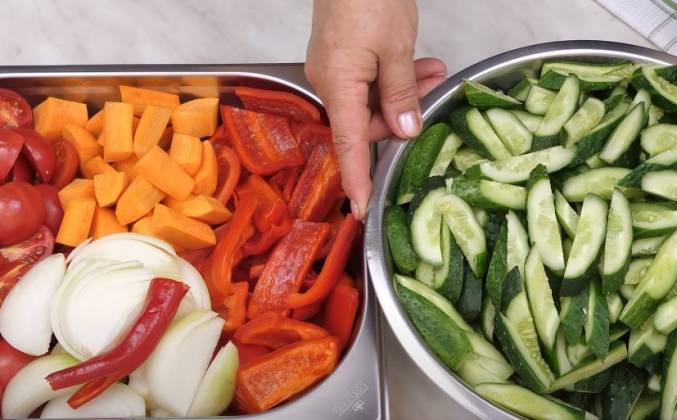 Заготовка лечо из огурцов на зиму с помидорами и перцем