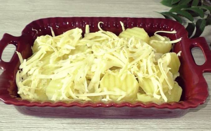 2.  Теперь выкладываем в форму слой картофеля. Солим и перчим по вкусу, можно добавить любые другие специи. Сверху на картофельный слой натираем на тёрке сливочное масло (по вкусу). Далее оставшийся картофель. Соль, специи я больше не добавляю. Сверху ещё сливочное масло. Вкусно добавить буквально 30 мл. молока, тогда картофель получится как со сливками. 3.  Так же можно сливочное масло, не на тёрке натирать, а растопить, добавить в него соль и специи. Смазать этим маслом картофель и в духовку, в любом случае будет вкусно. Я в духовке запекала при 180 градусах, 30 минут, но это зависит от духовки и от сорта картошки. Очень вкусно получается, по желанию можно сильнее дать зарумяниться.