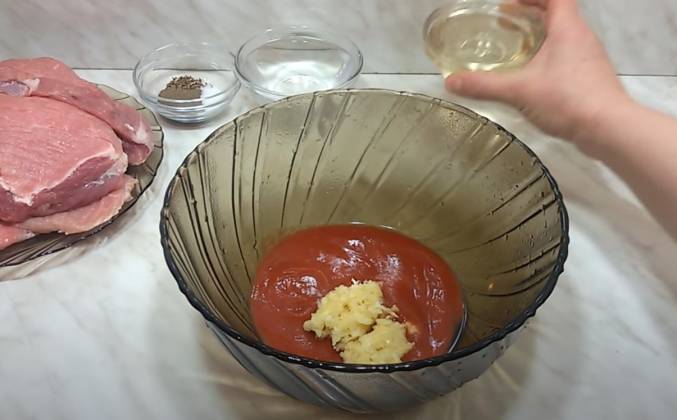 Свиной кусок запеченное в духовке рецепт - запеченная свиная отбивная с томатно-чесночным соусом.