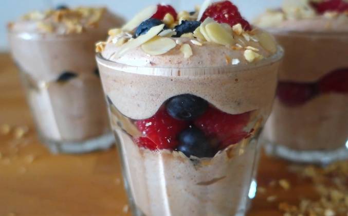 3. Из указанного количества ингредиентов у меня получилось примерно 10 порций. Также я украсила мусс черникой, малиной, кокосовой стружкой, миндальными хлопьями и измельчёнными орехами. Этот мусс можно кушать уже прямо сейчас, либо дать ему остыть в холодильнике пару часов. Но не храните его слишком долго, так как мусс постепенно осядает.Видео рецепт ютуб ниже 👇