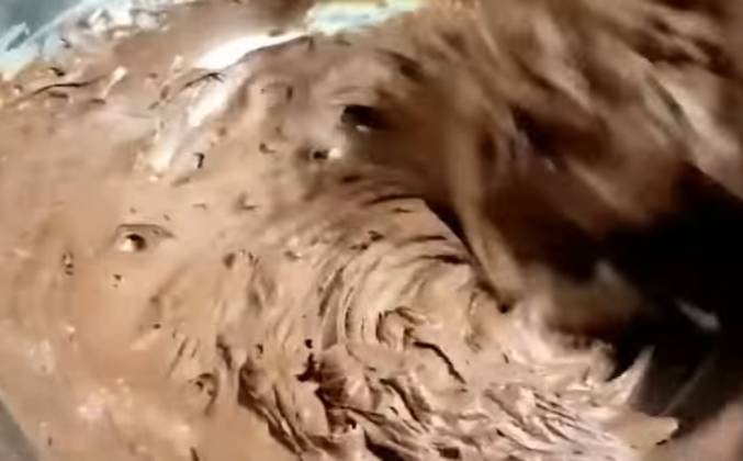 2. Продолжаем, пока он не станет однородным. Положите в морозилку на 5 минут, затем выньте и перемешайте. Ставим в морозилку еще на 10 минут, затем достаем и хорошо перемешиваем.