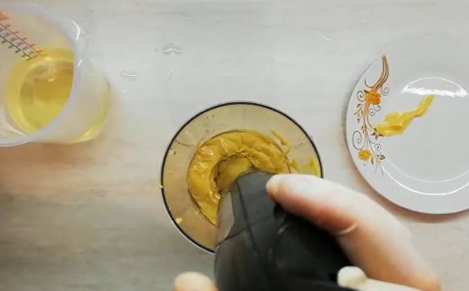 2. Мы все овощи ошпарили и слили уксус ... Для горчичного соуса используем: 300 г сладкой горчицы, 500 мл растительного масла, 1 столовую ложку горчицы острой. В высокую миску кладем немного горчицы ... Затем влить немного растительного масла и приготовить соус блендером или венчиком. добавить горчицу и масло до готовности.