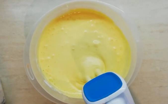 2. Смешайте яичные белки с сахаром до образования пены 10 столовых ложек растительного масла 10 желтков. Гомогенизируйте состав. Ванильная эссенция 10 столовых ложек муки. Положите в состав тыкву и перемешайте.