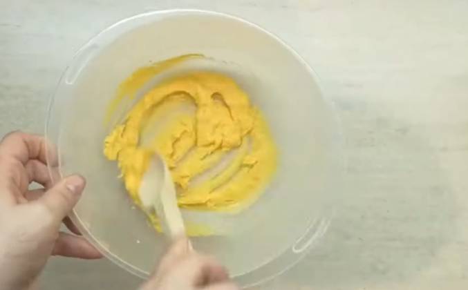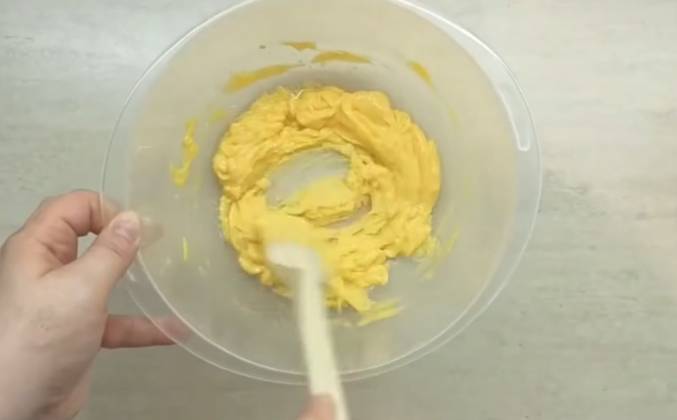 2. Смешайте желтки, пока они не станут пастой. Затем постепенно добавляйте 150 миллилитров растительного масла.