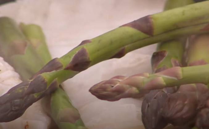 Как приготовить жаренную рыбу с кальмаром и спаржей на сковороде по рецепту от шеф повара Джейми Оливера. Здесь у нас есть спаржа. Я хочу сделать что-то вроде ассорти на гриле, только вместо мяса я использую рыбу.