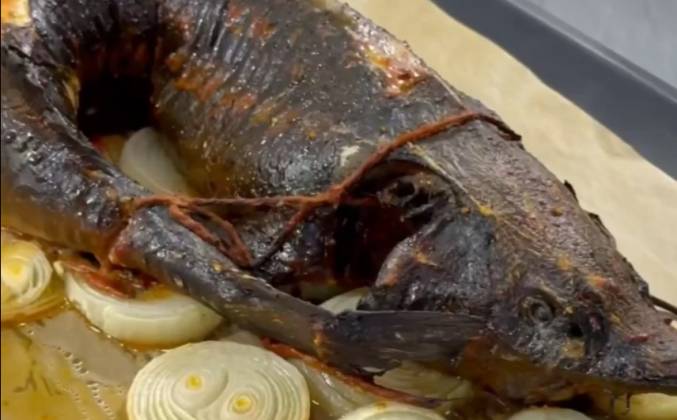 Как сделать Запеченную рыбу осётр целиком в духовке рецепт простой. осетр издавна считается ценной рыбой и прекрасно подходит для украшения праздничного стола. Из осетра получается прекрасный шашлык и в духовке тоже очень вкусно целиком его запечь. Запекание в духовке позволяет сохранить максимальное количество полезных компонентов. У осетра нежное и жирное мясо, поэтому его невозможно пересушить в духовке.