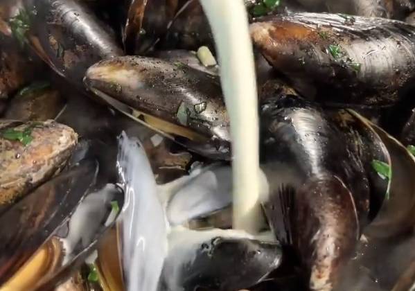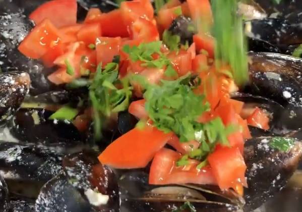 Как сделать вкусные Мидии в сливочно чесночном соусе, луком и помидорами на сковороде рецепт простой. .