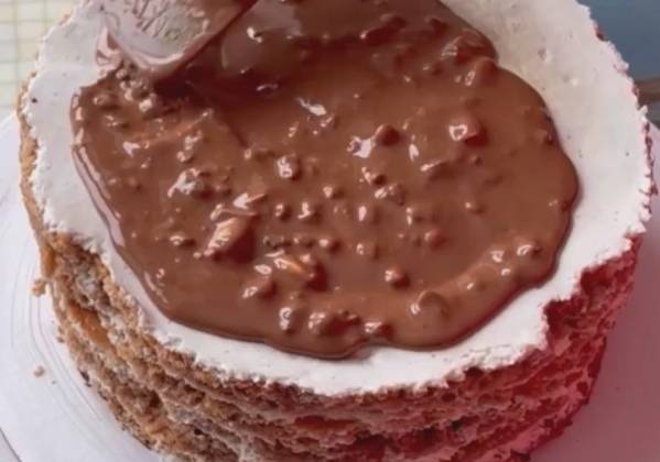 Сгущённый шоколадный торт со сметанным кремом