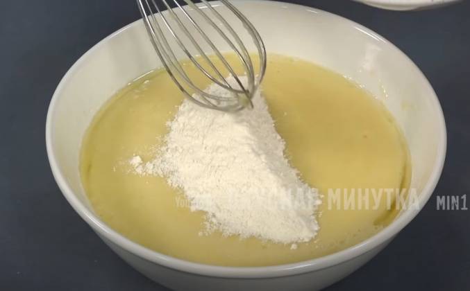 2. Свежий лук сюда не очень подходит. А сухой - идеально. Лук можно купить готовый. Но я сушу сама. Как я это делаю, я рассказала ЗДЕСЬ. Вместо сухого лука можно добавить жареный - тоже вкусно. Постепенно добавляю в тесто просеянную муку. И перемешиваю венчиком, чтобы не было комочков. Какое должно получится тесто, хорошо видно в видео ниже: Должно быть как густая сметана. Если тесто получилось более густое - добавляю немного молока. Если более жидкое - немного муки.