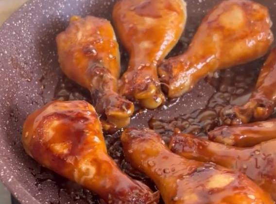 Курица в соусе из апельсина, меда, соевого соуса и чеснока