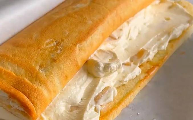 4. СОБИРАЕМ РУЛЕТ:Бисквит пропитываем сиропом, выкладываем кусочки яблок, распределяем крем и плотно сворачиваем в рулет. Заворачиваем в пищевую пленку и убираем в холодильник на пару часов ! Подаем )