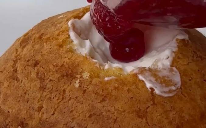 4. Кексики получилось очень мягкие и пышные. Добавим в них начинку - сделаем углубнюление в центре (не до конца), добавляем крем чиз, джем и закрываем. Украшаем глазурью иди подаём так.Видео рецепт ниже 👇