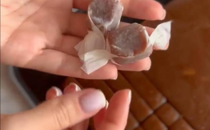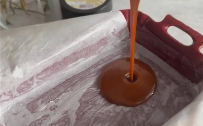 3. Форму простелить пергаментом, смазать маслом, выливаем массу. Охладить в холодильнике 3 часа, до твердого состояния. Нарезать на конфеты.