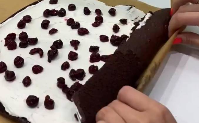 Шоколадный рулет с вишней