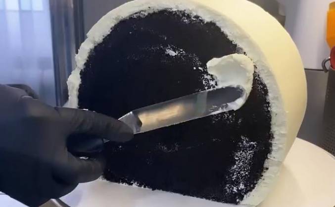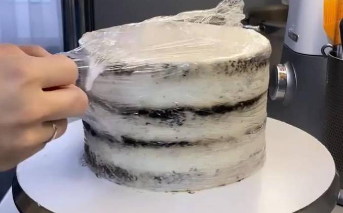3. Радуемся, когда видим такую красоту😍 Высота моего торта перед переворачиванием 12см, диаметр 18см. Вес готового торта 2кг. Делайте крем на выравнивание с запасом, так как заднюю поверхность торта нужно выровнять.