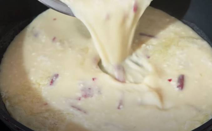 2. Режем колбасу и добавляем к яичной смеси, перемешиваем. Выкладываем на сковороду сливочное масло, дожидаемся когда оно растопиться.Видео рецепт ютуб ниже 👇