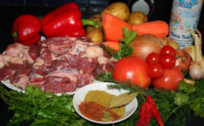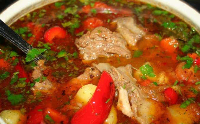 Суп шурпа из баранины в кастрюле по узбекски домашняя