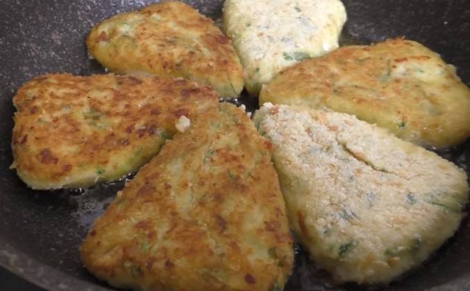 4. И обваливаем их в панировочных сухарях. Не обязательно делать котлеты традиционной круглой формы. Мы можем сделать их даже треугольными - будет еще интереснее. Обжариваем котлетки на небольшом огне до золотистого цвета. Несмотря на то, что у нас тут сырой кабачок, он настолько нежный особенно после того, как мы убрали лишнюю воду, что готовиться он будет очень быстро. Котлетки отлично зажариваются, а благодаря сыру появляется очень аппетитная корочка.Видео рецепт ютуб ниже 👇