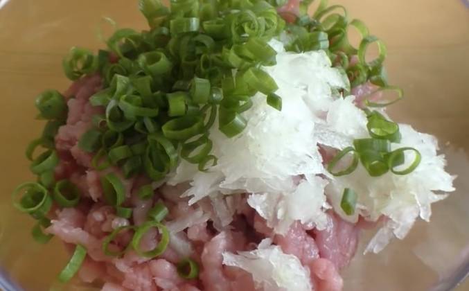 2. Можно, конечно, и половинки кружочков сделать, которые мы теперь красиво выложим, прям сразу, можно чуть-чуть и нахлёст. Такие пропуски заполнить другими кусочками. Как видите, все очень быстро и очень лениво. В 500 граммов фарша добавляем одну луковицу. Я ее натёрла на крупной терке. Сюда же добавим немного зеленого лука, все-таки у нас блюдо летнее. Хочется ярких красок и ярких ароматов. Соль. Ну, в смысле черный перец, конечно же, вы видите. Соль.