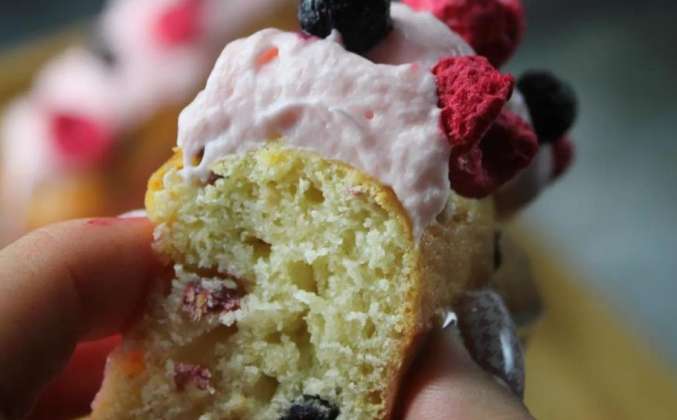 Как приготовить Творожные кексы с крем чизом и лесными ягодами рецепт пошагово