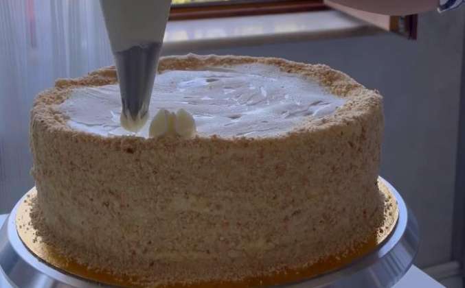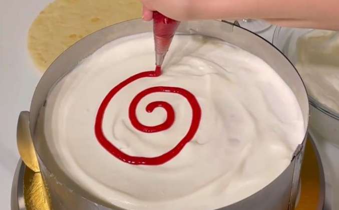 5. Остудить и в холодильник на 30 минут. Сборка: корж смазать обильно 3-4 ст.л крема, отсадить конфи, снова корж, крем, конфи…последний корж смазать кремом, Накрыть пленкой и на ночь в холодильник. Украсить по желанию.Видео рецепт ниже 👇