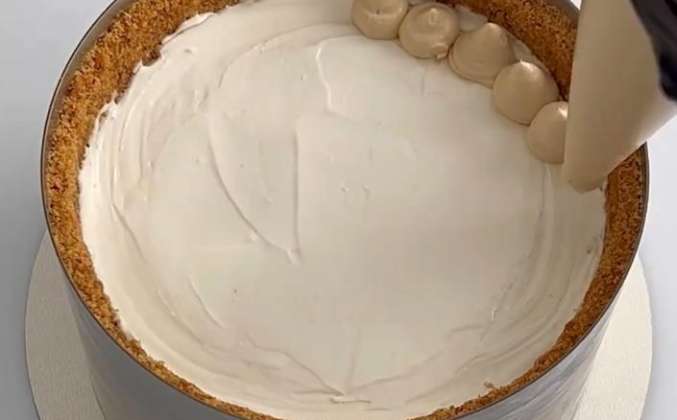Перелить массу в форму 16 см и положить в морозилку на ночь. После нужно будет вырезать нужный диаметр, чтобы положить на чизкейк. (Диаметр зависит от того, какой толщины будет бортик у чизкейка) Если у вас есть форма 12 см, то можете суфле перелить туда, но тогда всю массу не наливайте, чтобы суфле не было слишком высоким и внутри песочных бортиков поместился сметанный и кофейный крем.
