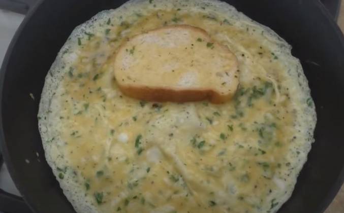 3. Вот такой чудесный тост у нас получился! Огонь убавляем, дадим яйцу пропечься, это буквально займет еще, может быть, минутку. Вот и всё, друзья мои! Готовить одно удовольствие, а вся семья будет сыта и довольна! Вот такой чудесный завтрак - быстрый, простой и очень вкусный у нас получился! Конечно же, это блюдо резать ножом не надо, его нужно брать руками и есть, с удовольствием откусывая каждый кусочек, чтобы все попало - и огурчик, и батон!Видео рецепт ютуб ниже 👇