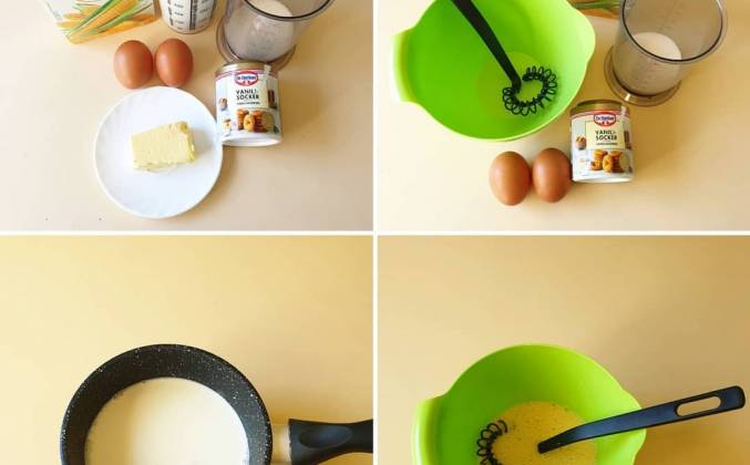 2. Ставим на плиту и варим до загустения, обязательно непрерывно помешивая. ⠀ Как только крем начал булькать, добавляем сливочное масло, перемешиваем и снимаем с плиты. По консистенции крем должен напоминать густую сметану. ⠀ Перекладываем крем в стеклянный контейнер и накрываем пищевой плёнкой в контакт (чтобы плёнка касалась поверхности крема) и убираем в холодильник до полного остывания. ⠀
