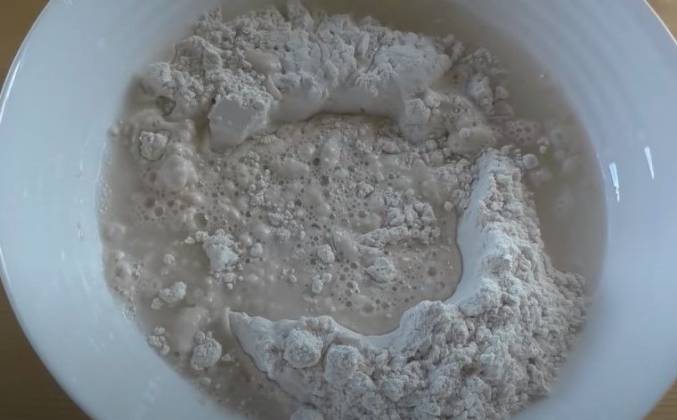 2. Добавляем соль и замешиваем тесто. Тесто получается мягкое и к рукам не липнет - отличное! Убираем в чашку, накрываем пленкой и даем расстояться минут 60 Время зависит от температуры на вашей кухне - чем жарче, тем быстрее тесто расстоится Тесто отлично поднимается, смотрите какое пышное! Обминаем его. Стол слегка припылили мукой. И теперь делим тесто на 6 частей.