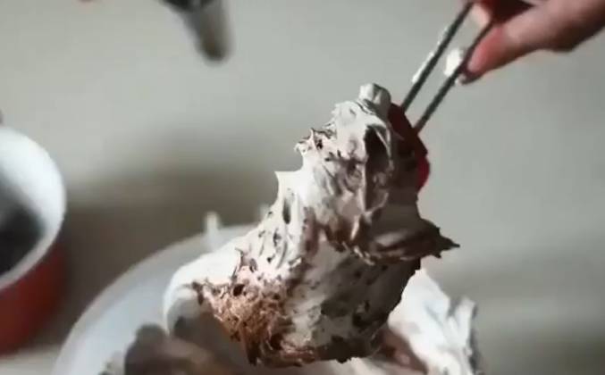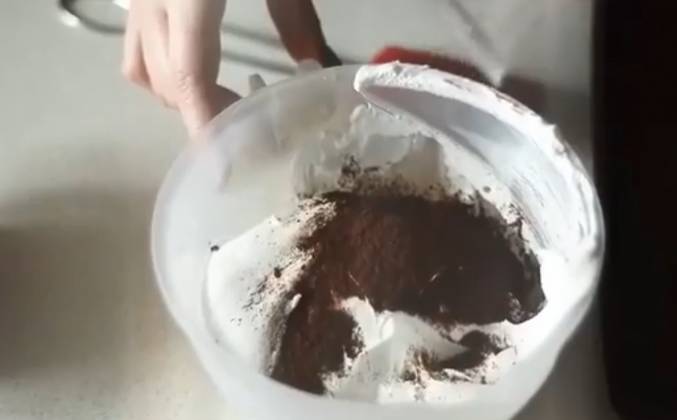 2. Не размешивайте полностью - достаточно нескольких движений, чтобы какао окутало своим ароматом, вкусом и цветом сладкую Меренгу. Теперь с помощью кондитерского мешка отсадите безе на пергамент или силиконовый коврик.