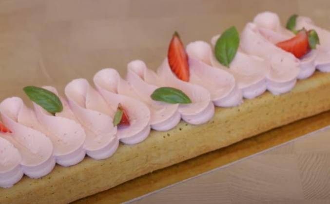 Фисташковый кекс финансье с клубникой и клубничным кремом по рецепту Ирина Кукинг.