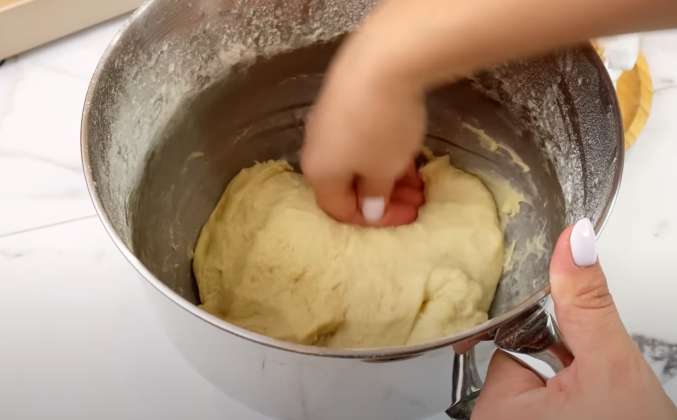 2. При помощи насадки крюк вымешиваем тесто. Чтобы пончики получились очень вкусными, нужно тесто хорошо вымесить Примерно 10 минут. Можно это делать всё вручную, но намного проще с кухонной машиной, ей просто нет равных. Устанавливаем время и занимаемся другими делами. Вот такое тесто получается. Даём тесту теперь подняться. По времени занимает примерно 1 час. Пока тесто поднимается, я покажу, как приготовить мягкое мороженое из молока и банана. Два банана очищаем и нарезаем и замораживаем. Вес замороженных бананов У меня 200 г.