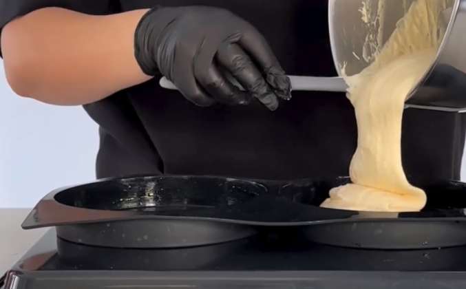 4. К меренге добавляем желтки и растопленное масло, перемешиваем на минимальной скорости миксера. Теперь постепенно в 2 этапа вводим муку и соль аккуратно вмешиваем лопаткой, чтобы меренга при этом оставалась пышной. Перекладываем в 2 кольца 18 см и отправляем в заранее разогретую до 170С духовку на 12-15 мин., режим верх низ БЕЗ конвекции. Остужаем на решетке. Нарезаем на 4 коржа.Видео рецепт ниже 👇
