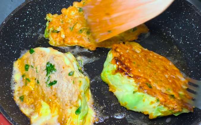 Хрустящая капуста в кляре в панировочных сухарях на сковороде