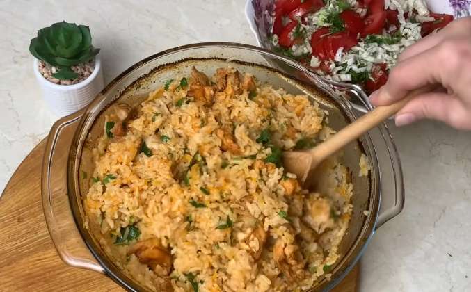 Как сделать вкусный Рис с курицей в духовке просто и быстро дома.